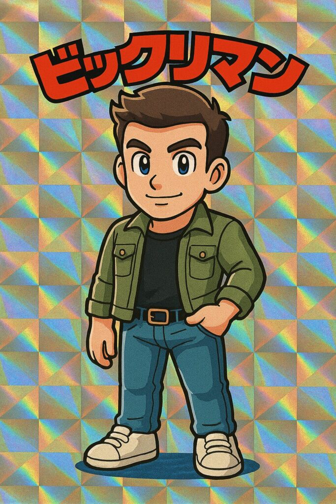 | 7 | ビックリマンシール風 | この写真をビックリマンシール風に変換してください。ホログラム風背景、デフォルメタッチでレトロなポップアート風に仕上げてください。 |